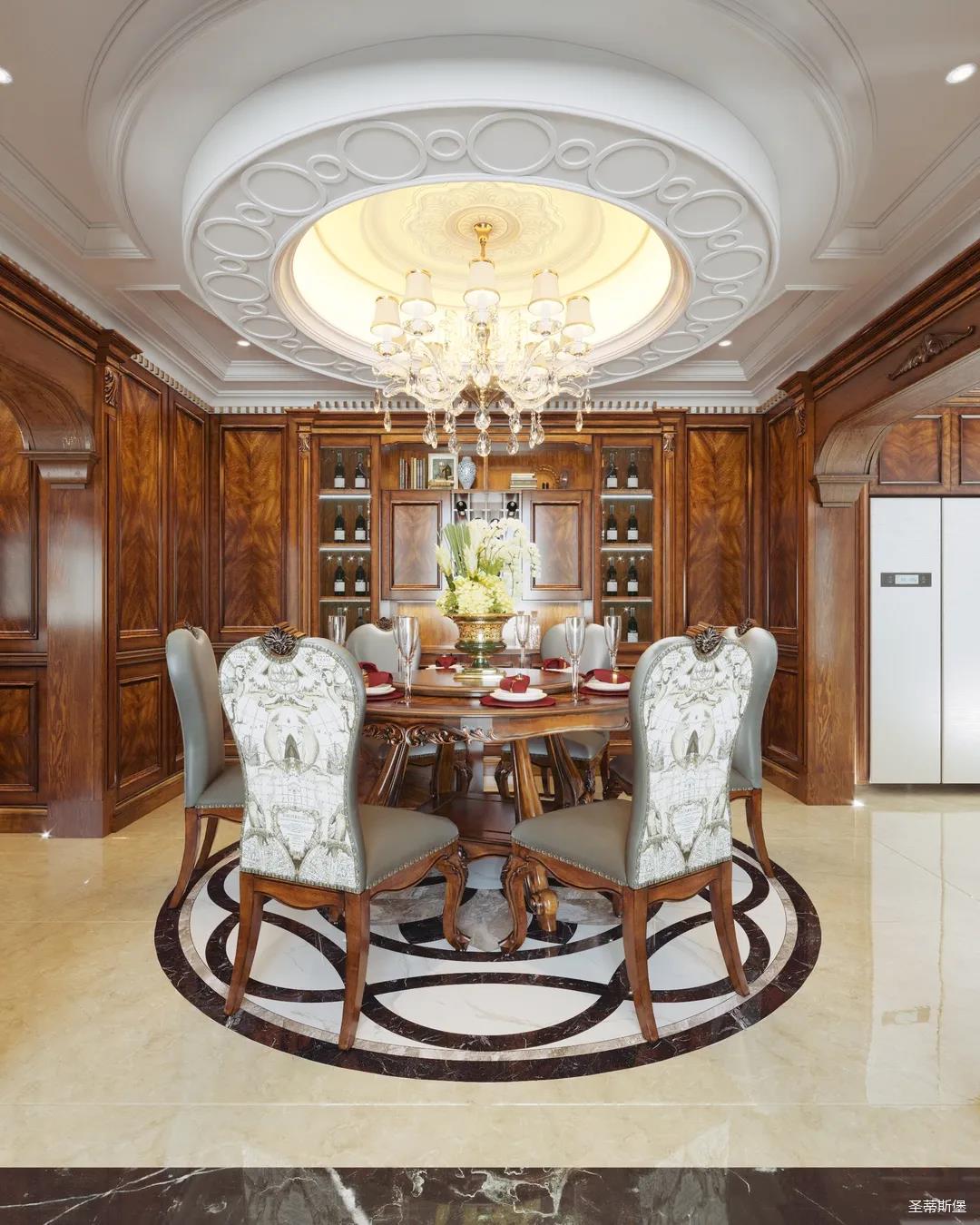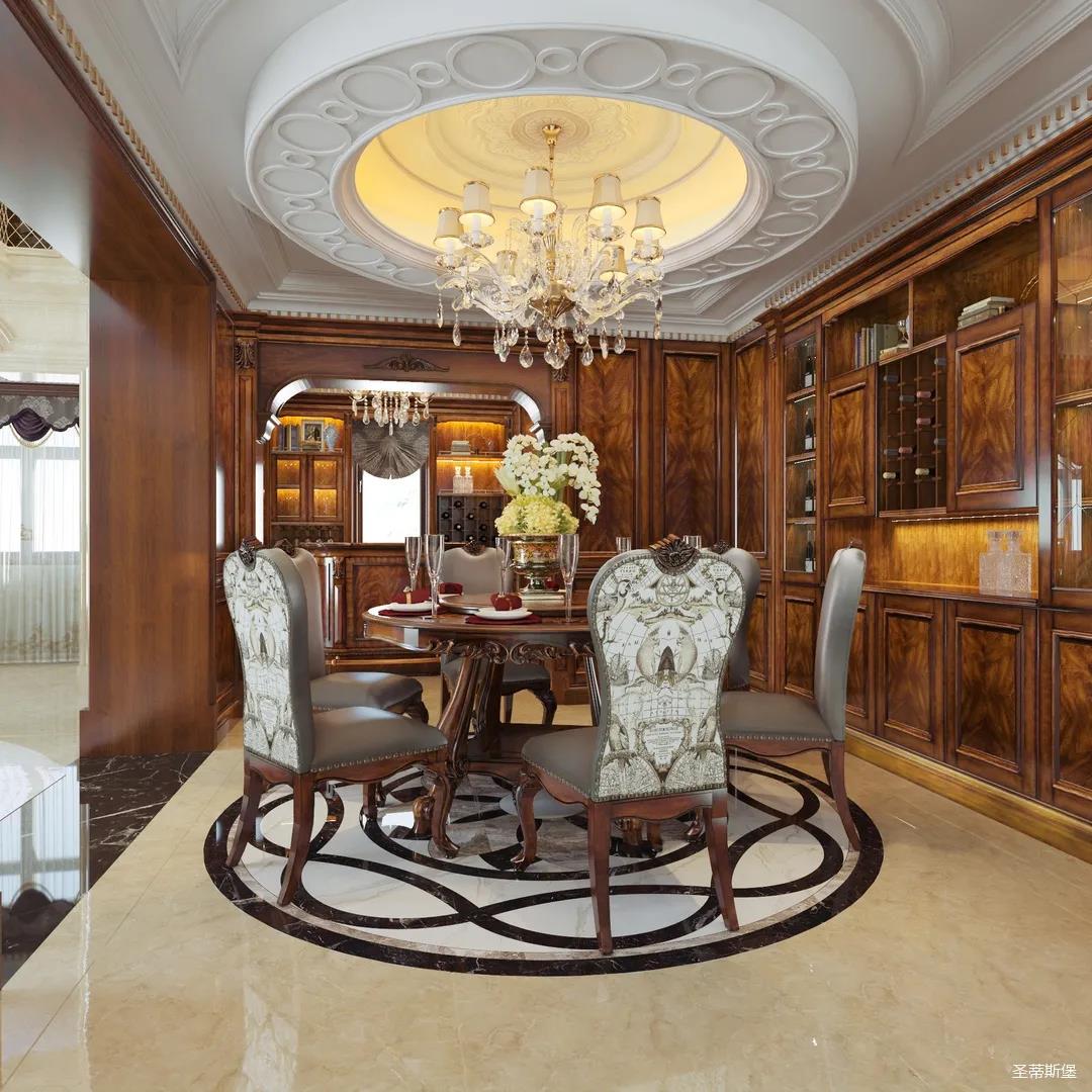 客廳重點強調優雅的雕刻和舒適的設計,在保留了美式家具色澤和質感的同時,又注意現代生活空間。大開窗將光線引入客廳,傍晚時分,當落日余暉灑進屋內,猶如在塞納河畔欣賞落日的浪漫,溫馨又撫慰人心。
