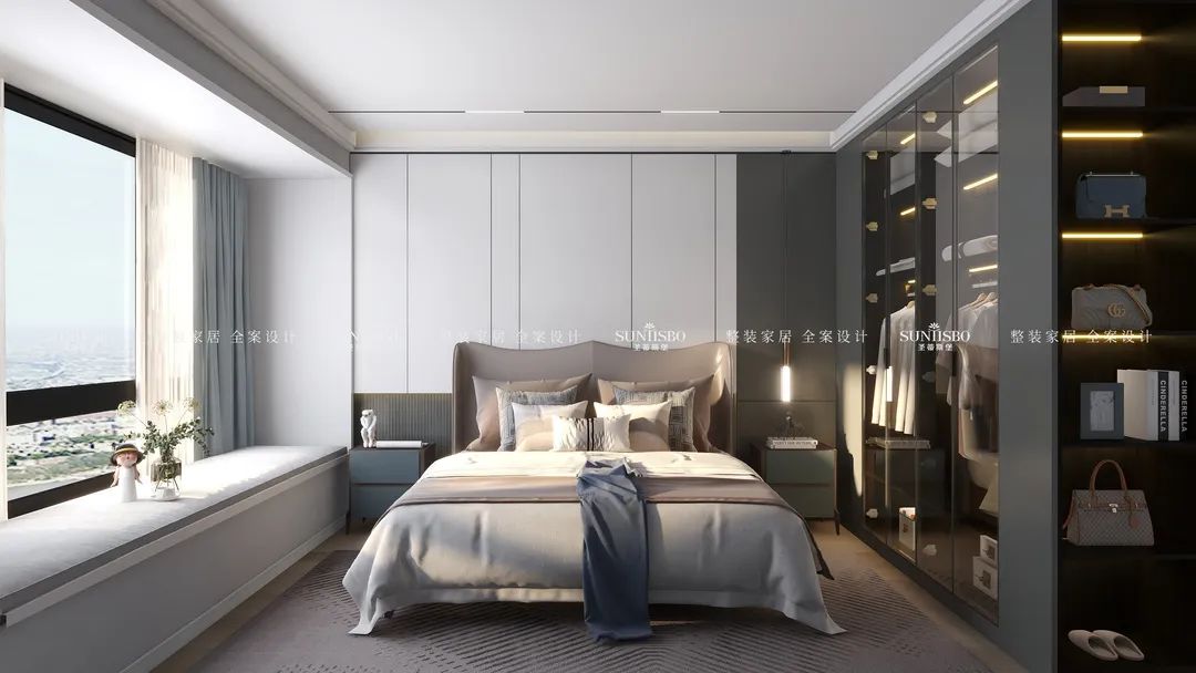 擁有一個專屬衣帽間是很多女生的夢想。設計師回歸生活本質,究其外,是空間;究其內,是材質、燈光,內外融合,比例和諧。通過不規則狀的玻璃鏡面設計,在時尚高級的定制空間中,傾訴著創意的真實和溫度,不僅擴大了衣帽間視覺范圍,同時也給予了空間個性鮮明的藝術格調。
